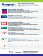 Tools and helpful materials for staff in Wisconsin's public, K12 and academic librariesBulletinContact UsRequest Training Getting StartedSet-up GuideBadgerLink Resource Links and LogosAccess Guide at School and HomeIP Reporting FormSubscribe to BulletinCollection Development PolicyProcurement CollectionsResource GuidesElementary SchoolMiddle SchoolHigh SchoolK-12 English Language ArtsK-12 National History DayK-12 Social StudiesK-12 STEMPublic LibraryYouth ServicesHomework HelpCollection DevelopmentEducators' Professional LearningHealth ResourcesAccessibilityNewspapersResources for Parents and FamiliesFinding Book ReviewsCountries and CulturesMarketing the ResourcesBookmarks & PostersFlyersShare your BadgerLink StoryTraining MaterialsInfo SheetsVideosWebsitesFor the ClassroomBadgerLink Scavenger HuntExplora Scavenger Hunt - PrimaryExplora Scavenger Hunt - SecondaryBritannica School - Scavenger Hunt Grades 3-5Britannica School - Scavenger Hunt Grades 6-8Back to School Checklist 2025Research GuideSuper 3 Research Guide